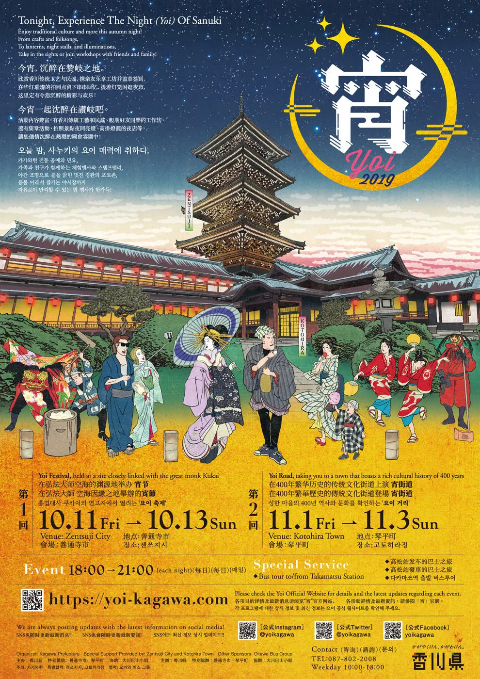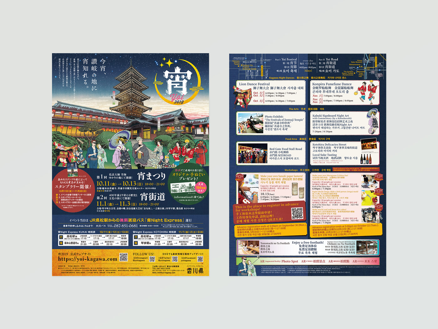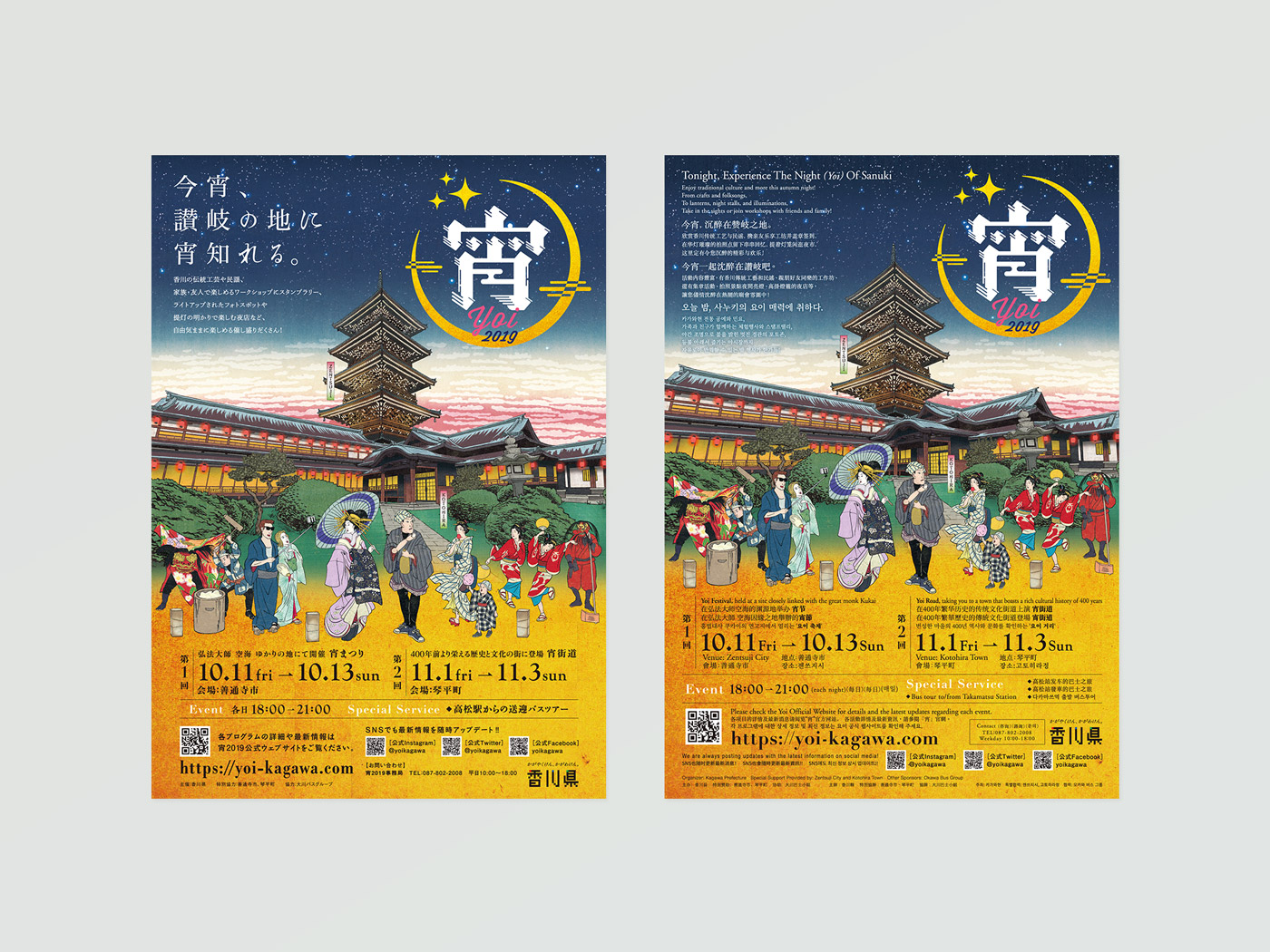善通寺市と琴平町で行われた夜型観光イベントの「宵2019」のトータルビジュアルデザイン。